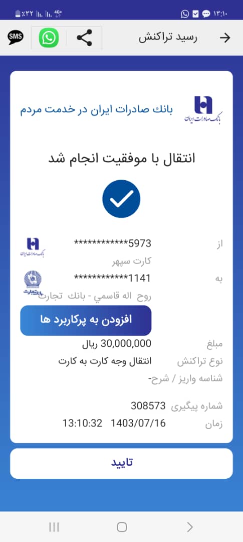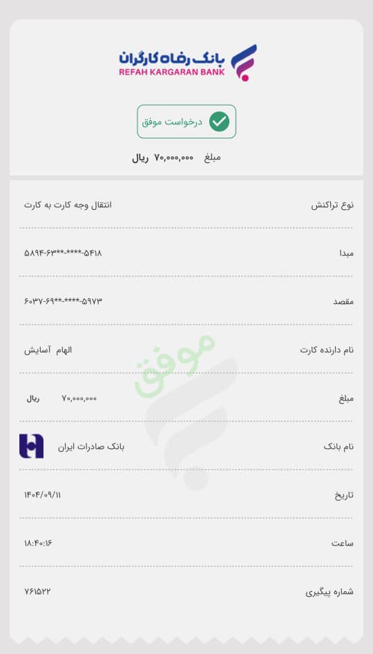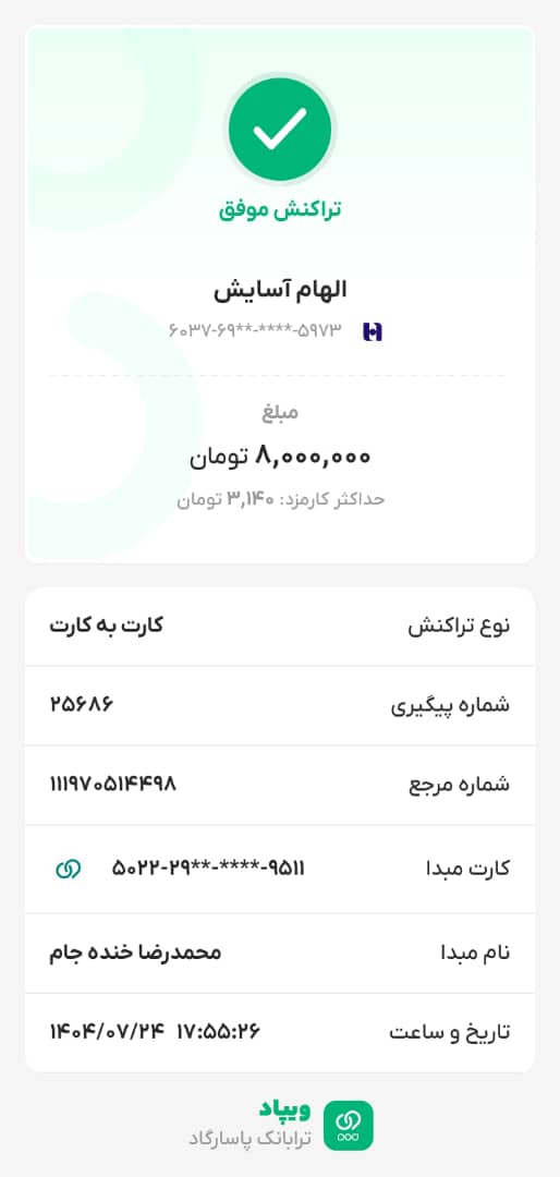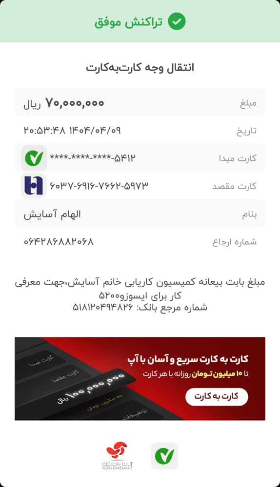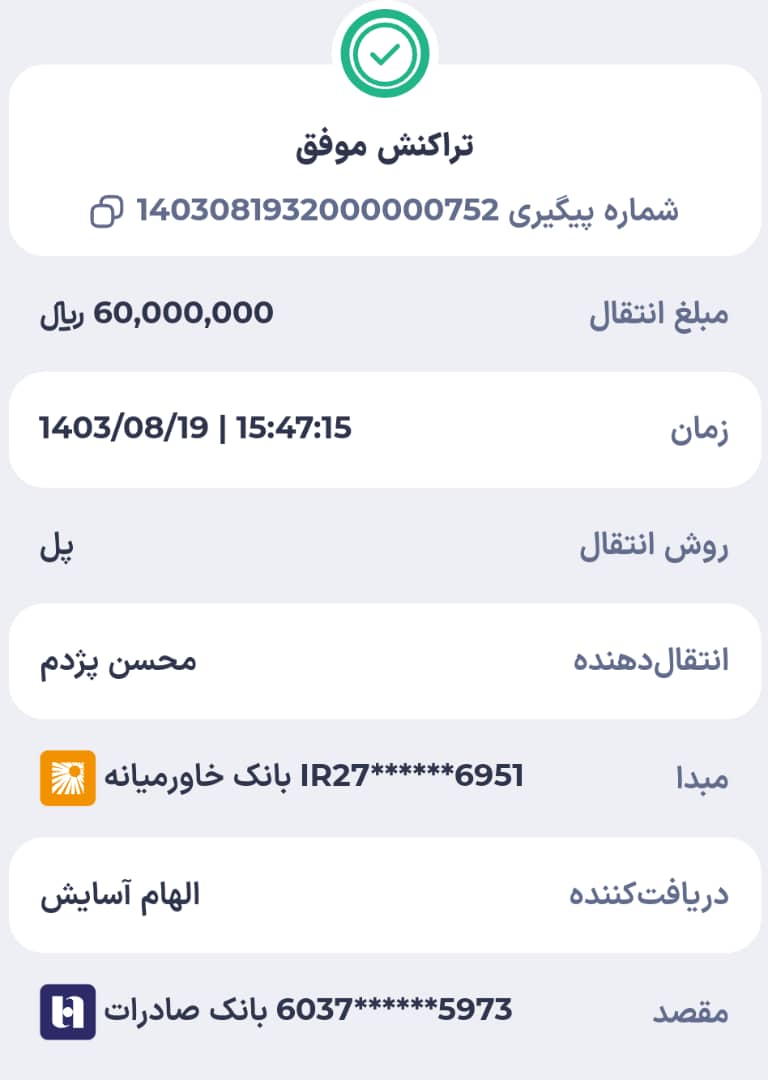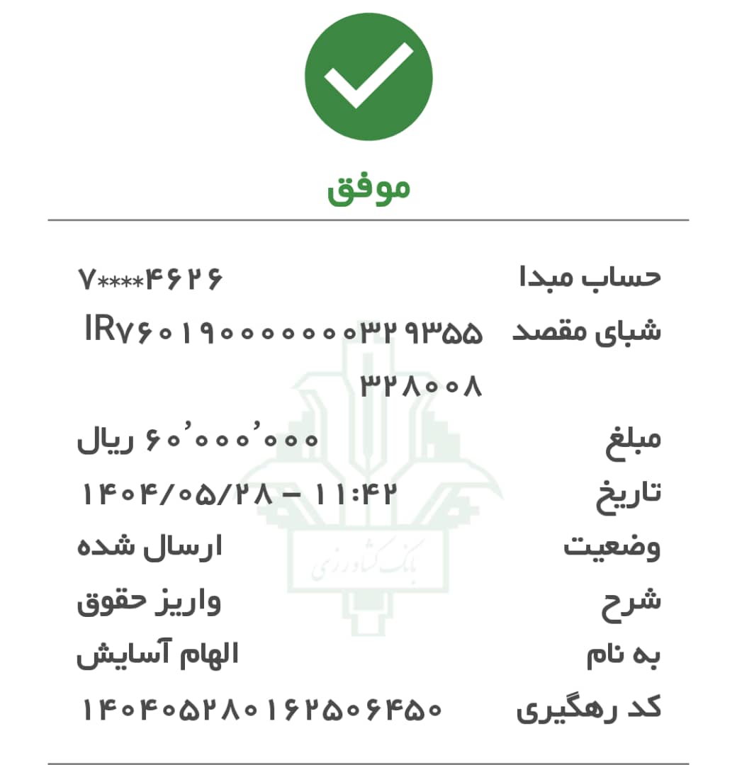 برخی از واریزی های کاربران عزیز که موفق به عقد قرارداد کار شده اند و برخی از برگشت پول به کاربرانی که موفق به عقد قرارداد نشده اند